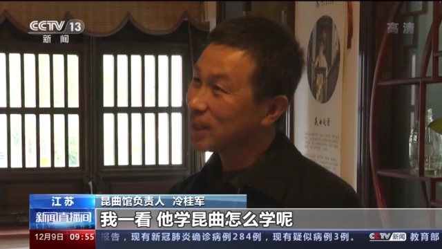 郭家源省吃俭用,不停地攒钱,就是为了能够有机会专业、系统地学习昆曲表演。今年12月初,他专程来到江苏苏州,近距离感受昆曲的魅力。