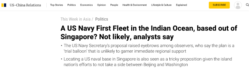 《南华早报》也对此发表相关评论文章,分析称这样的设想不大可能。文章指出,虽然自1990年以来,美国海军包括核潜艇以及航母舰队群是新加坡樟宜海军基地的常客,该基地已经成为美国海军在西太平洋的加油站和补给站,但这些事实并不足以构成美国与新加坡建立正式军事联盟的条件。