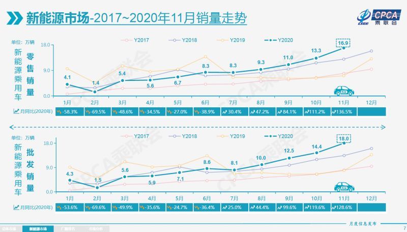 新华社北京12月9日电(记者安娜、白洁纯)记者8日从全国乘用车市场信息联席会获悉,11月新能源乘用车批发销量18.0万辆,同比增长128.6%,环比增长24.8%。