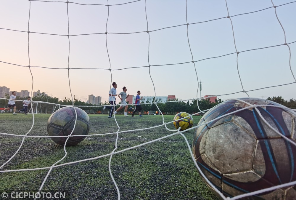 ↑2020年12月8日,在江苏省如皋市外国语学校操场上,学生在进行课后延时足球训练。CICPHOTO/徐慧 摄