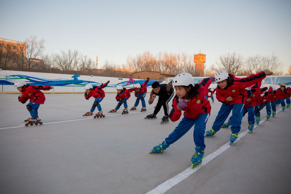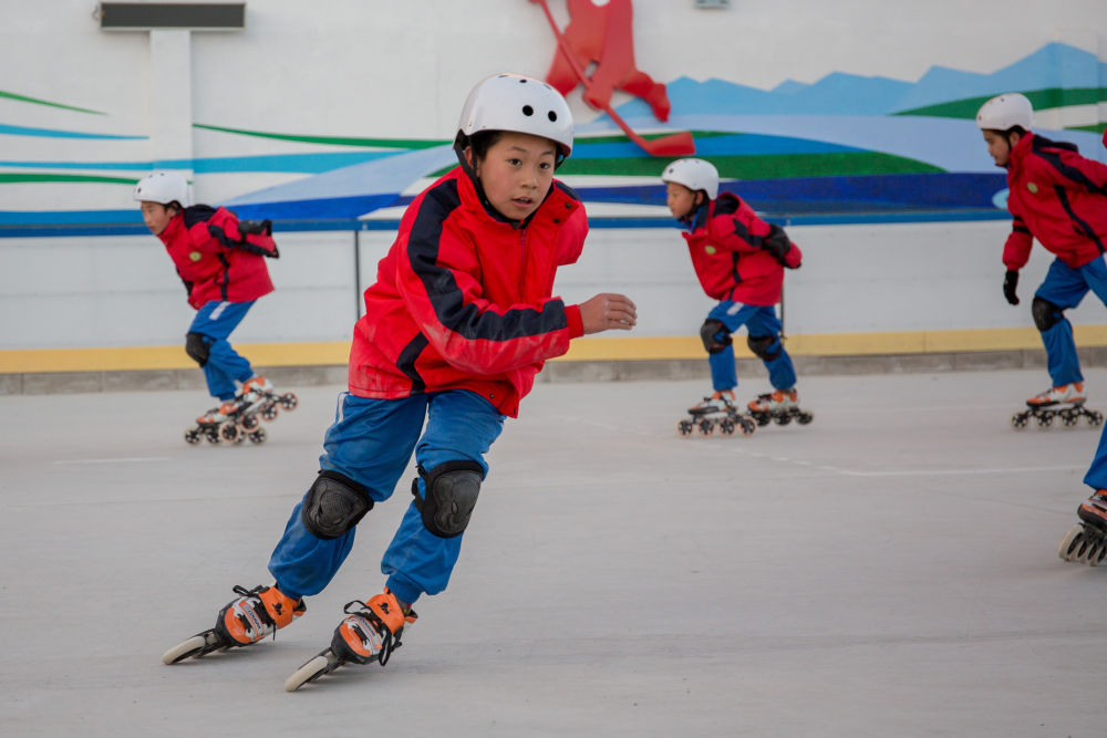 “重心可以再低点儿,注意摆臂幅度……”在一旁指导的万全区第五小学体育老师王怀朋喊道。他任教的这所学校是全国青少年校园冰雪运动特色学校,也是张家口市第一批冰雪运动培训基地。