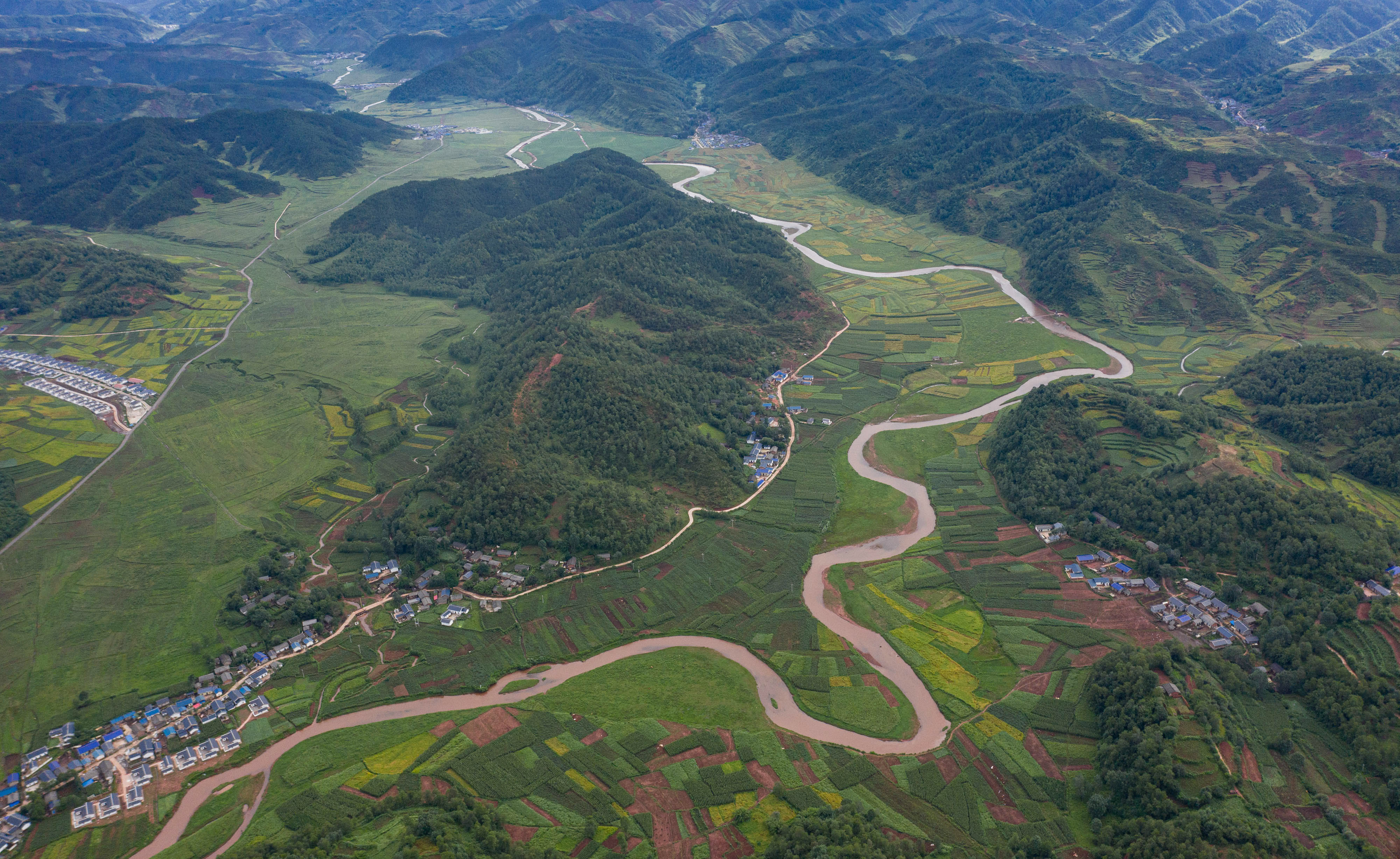 7月24日,俯瞰海拔2560米的昭觉县洒拉地坡乡,这里已经成为玫瑰、草莓、高山错季蔬菜等规模化种植园区。(新华社记者江宏景摄)