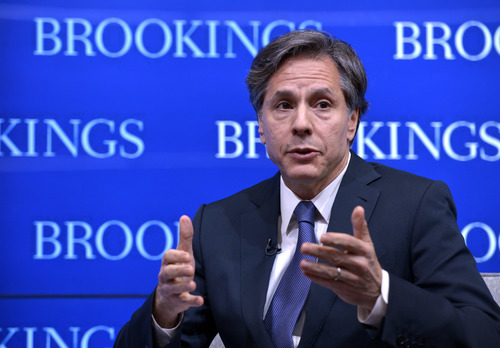 2015年3月31日,时任美国常务副国务卿安东尼·布林肯在华盛顿的布鲁金斯学会发表演讲。新华社记者殷博古摄