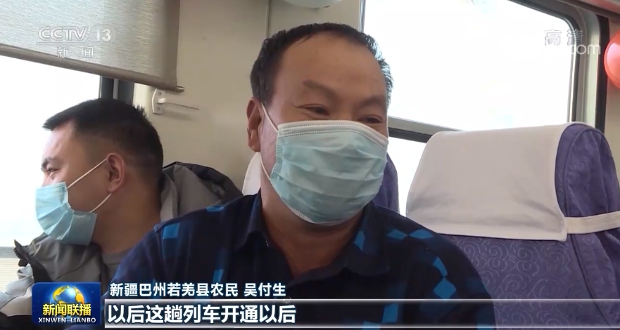 新疆巴州若羌县农民 吴付生:我们家种了有40亩的红枣树,每年就是三十多吨,以后这趟列车开通以后,对我们的销售帮助很大很大的。