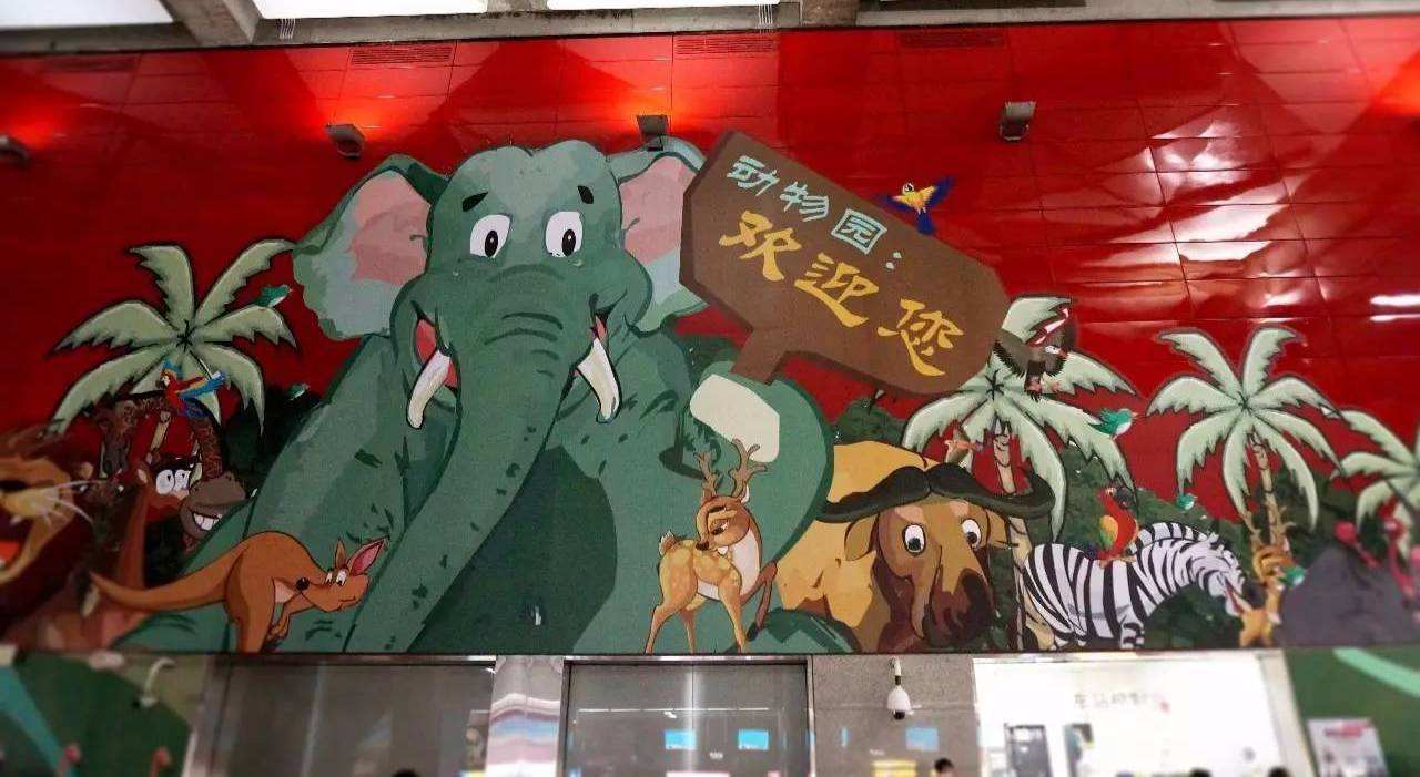 动物园站作为通往广州动物园的地铁出口,设计得童趣十足,大大小小的卡通动物形象迎接着每一位来到动物园的游客。