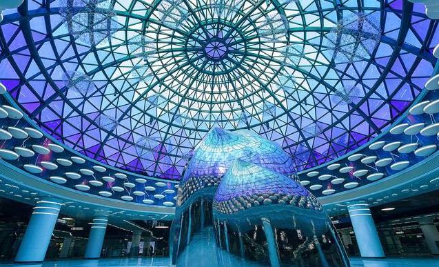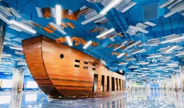 南沙客运港站是以“一带一路”为主题进行设计建造的,文化元素采用了海洋、船、海鸥等等,它重现了广州海上丝绸之路的历史盛况。其整体设计为船形,走进去仿佛身在海底,如梦如幻。