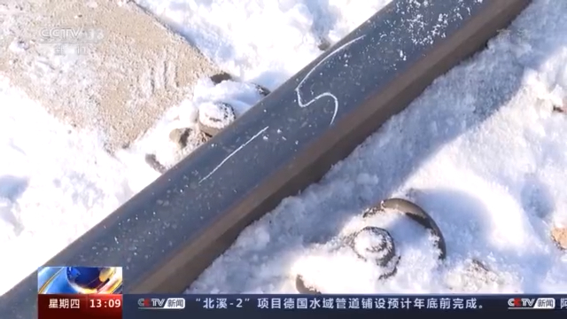 清理积雪,是维修作业的第一步。积雪清理之后,线路工开始给铁轨“体检”,并做好标记。