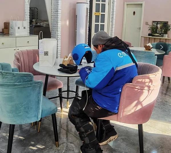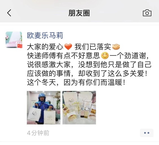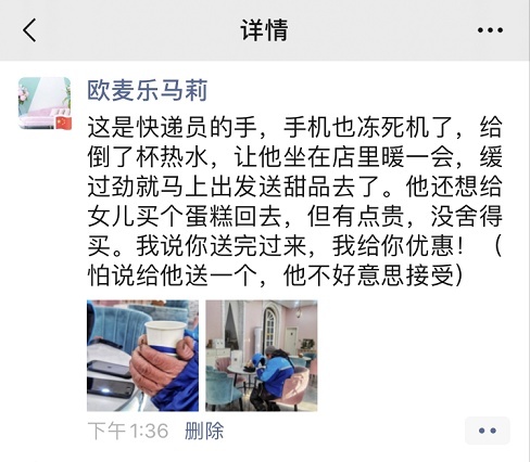 店主把佘师傅来店里取蛋糕的照片反馈到了客户群中,