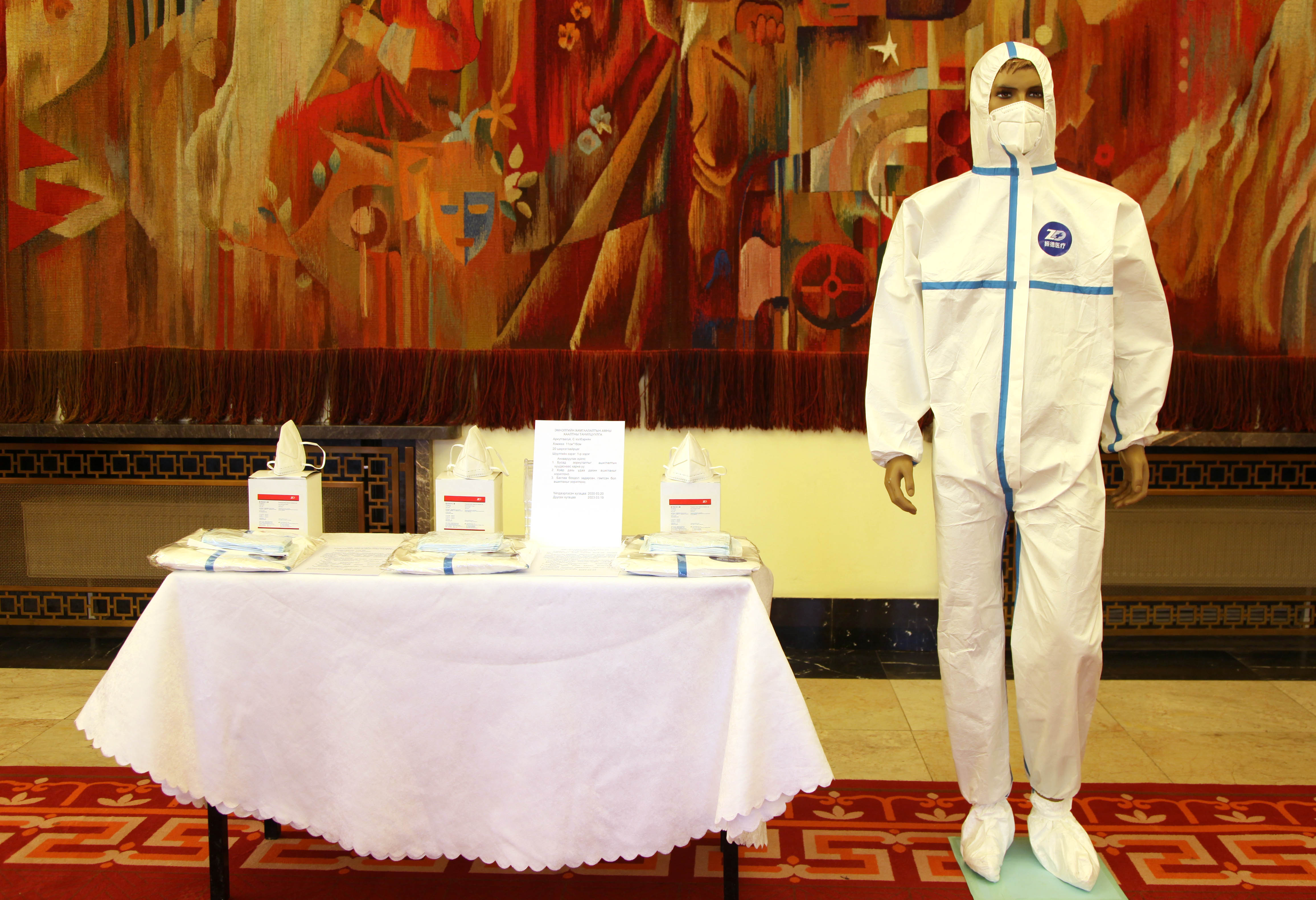 3月28日在蒙古国首都乌兰巴托拍摄的中国政府援助的部分抗疫物资。新华社发(嘎日迪摄)