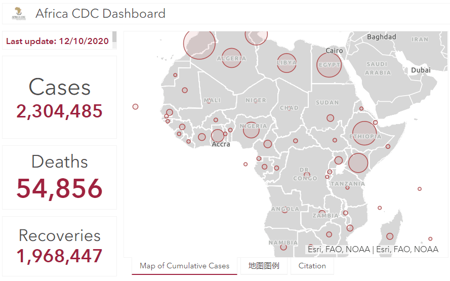 据非洲疾控中心统计数据,截至当地时间12月10日中午12时,非洲大陆新冠肺炎累计确诊病例达2304485例,累计死亡54856例,累计治愈1968447例。(总台记者 吴婷)