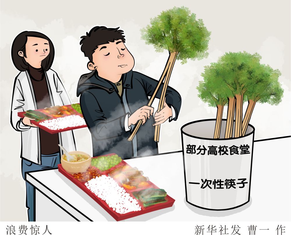 近年来,一次性筷子背后的环保问题日益受到关注。以一棵成年树木能够生产8000双筷子计算,我国每年因生产一次性筷子所“吞噬”的林木资源不是小数。“新华视点”记者近来走访发现,除了酒店、外卖等,一次性筷子源源不断地流向高校,部分高校食堂常年大量免费提供一次性筷子,有的高校甚至半年就花费6万多元,购买超过百万双筷子。
