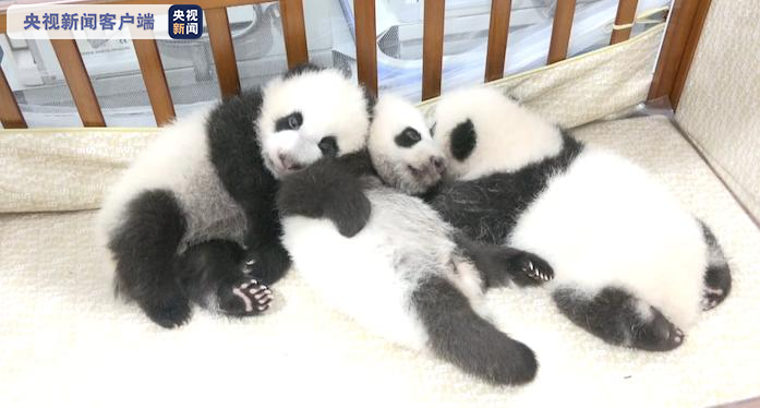 在陕西秦岭大熊猫研究中心,三只憨态可掬的大熊猫“三姐妹”刚刚过完百天。