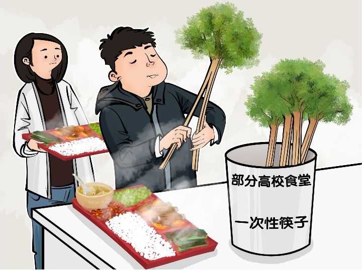 一日三餐免费用,日均"吃倒"多少树?部分高校一次性用筷浪费惊人