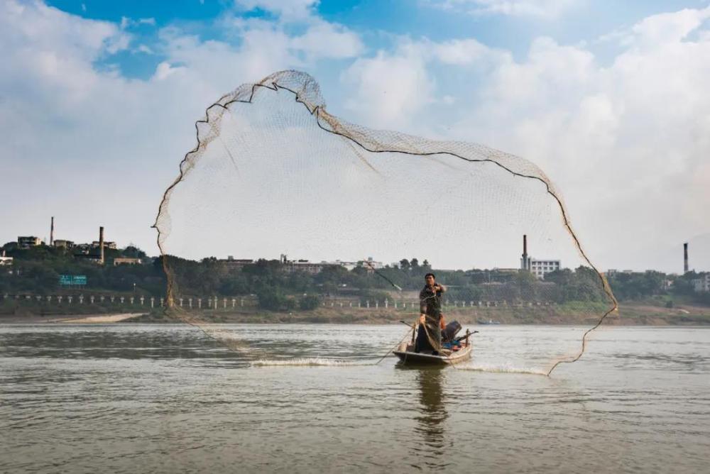 ▲2019年11月1日,重庆渔民罗玖明在长江上游重要支流嘉陵江上撒网捕鱼。自2020年1月1日零时起,长江流域的332个自然保护区和水产种质资源保护区全面禁止生产性捕捞,包括嘉陵江在内。