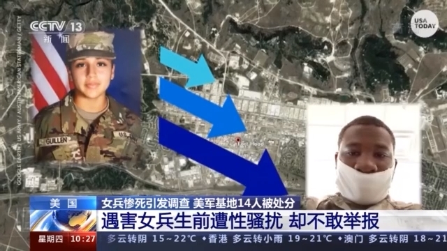 位于美国得克萨斯州的胡德堡美军基地丑闻缠身。在过去的一年中,有25名被分配到胡德堡军事基地的士兵死于自杀、谋杀或意外,包括惨遭锤子打死的一名20岁女兵。她的遗体直到失踪两个月后才被发现。当地时间8日,美国军方官员公布了独立调查报告,承认该基地相关防性侵系统存在严重缺陷,基地内部甚至形成默许性侵和性骚扰的恶劣氛围。