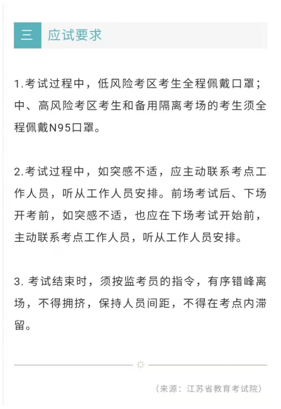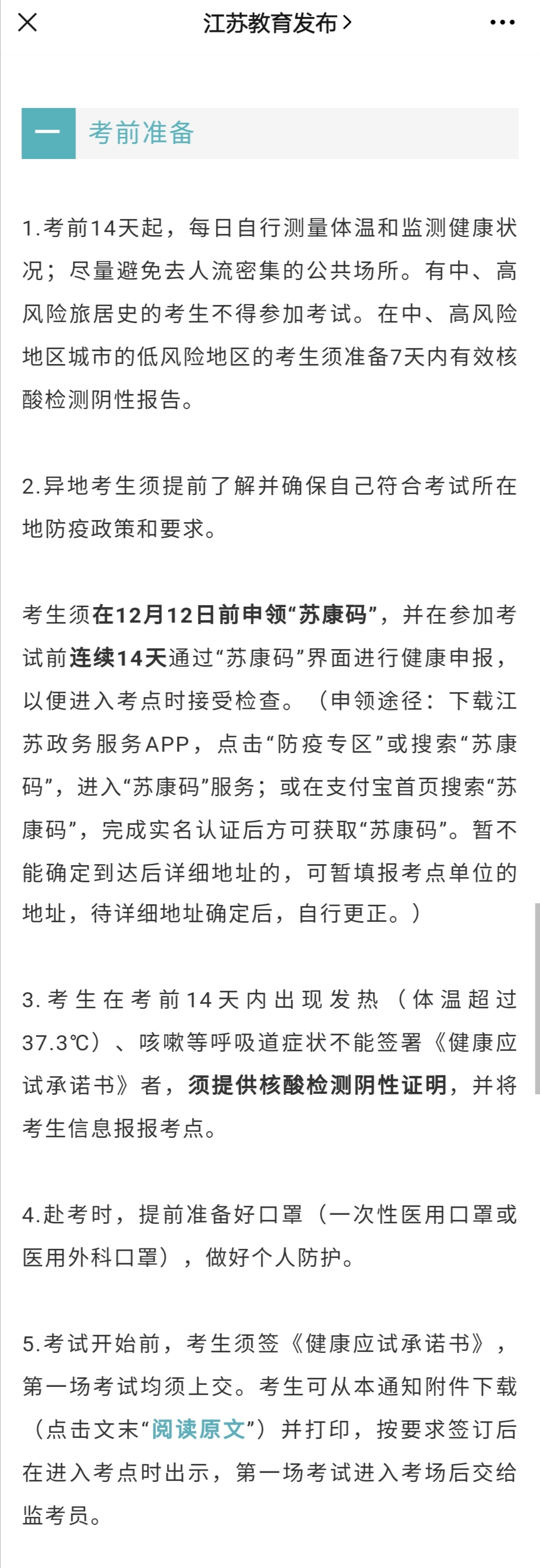 为保障考生和考试工作人员的生命安全和身体健康,江苏省教育考试院发布《江苏省2021年全国硕士研究生招生考试考生健康应试须知》。