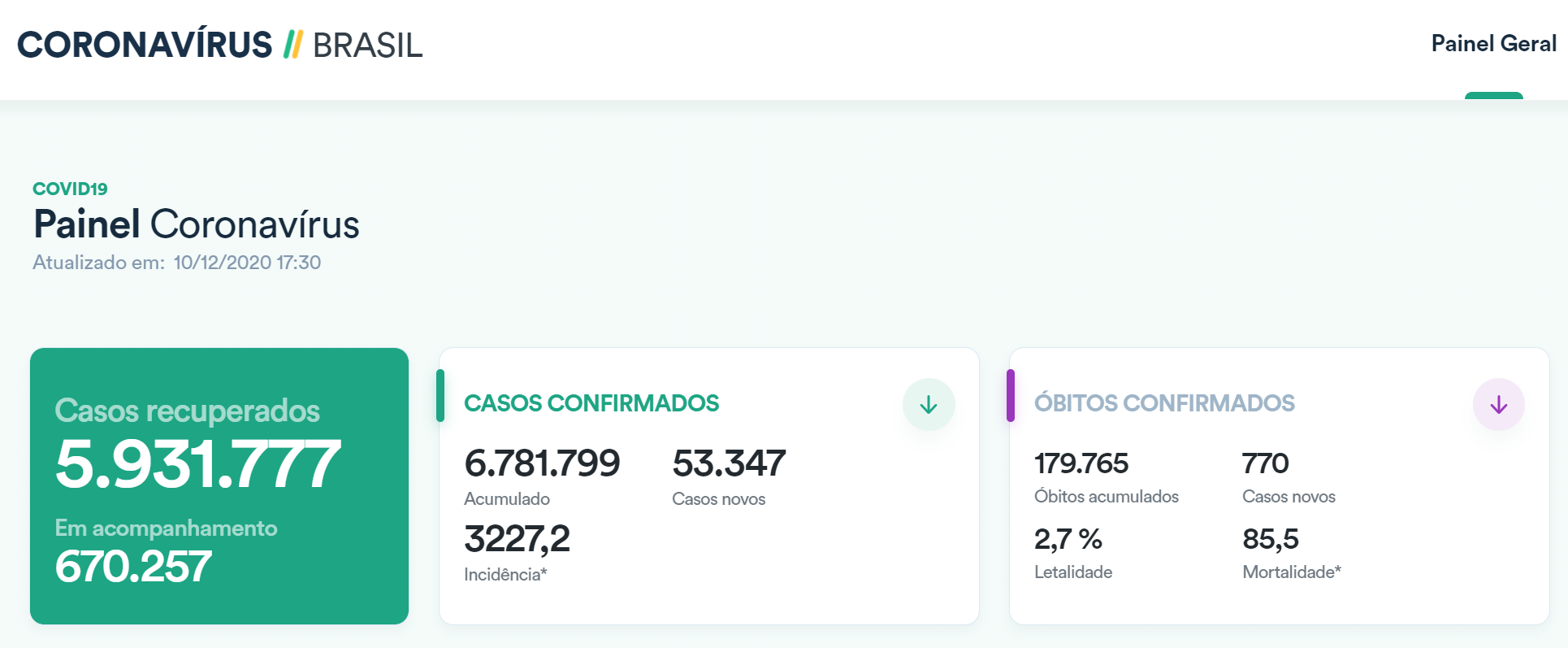 截至当地时间12月10日,巴西单日新增新冠肺炎确诊病例53347例,累计确诊6781799例,新增死亡病例770例,累计死亡179765人,累计治愈人数为5931777人。