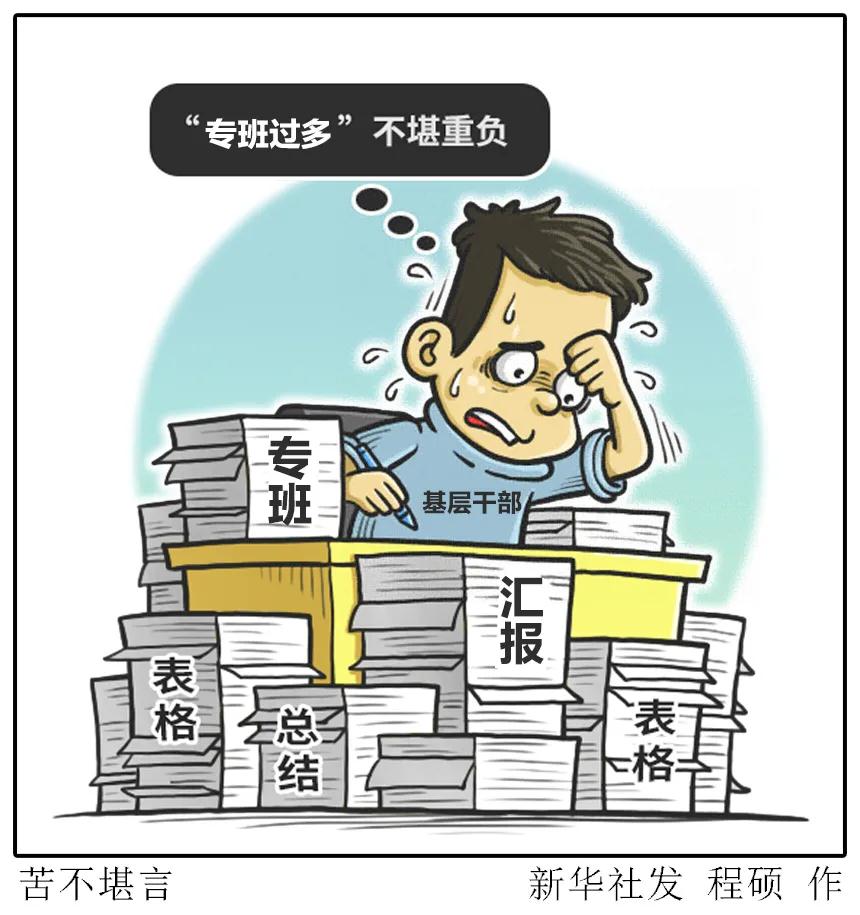 ——表态式专班。“以前只要是上级有活动,我们就按照活动制定方案成立领导小组。有一次,一周内就下发了成立6个领导小组、专班的文件,其中不乏重复的。”北方某省一名乡镇干部说。