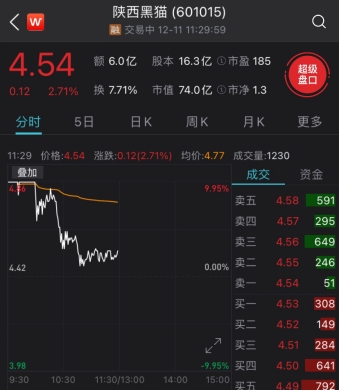 顺周期板块内,不少个股也感受到了从“天”到“地”的变化。其中,陕西黑猫开盘涨停,15分钟后开板,再涨停;临近10:00,股价跳水,随后震荡走低。截至午间收盘,陕西黑猫涨幅缩窄至2.71%。
