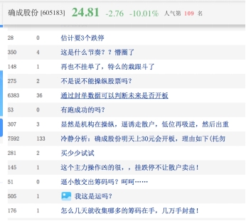确成股份6秒钟天地板的走势,引发股民热议。有股民表示“这是什么节奏?懵圈了”。