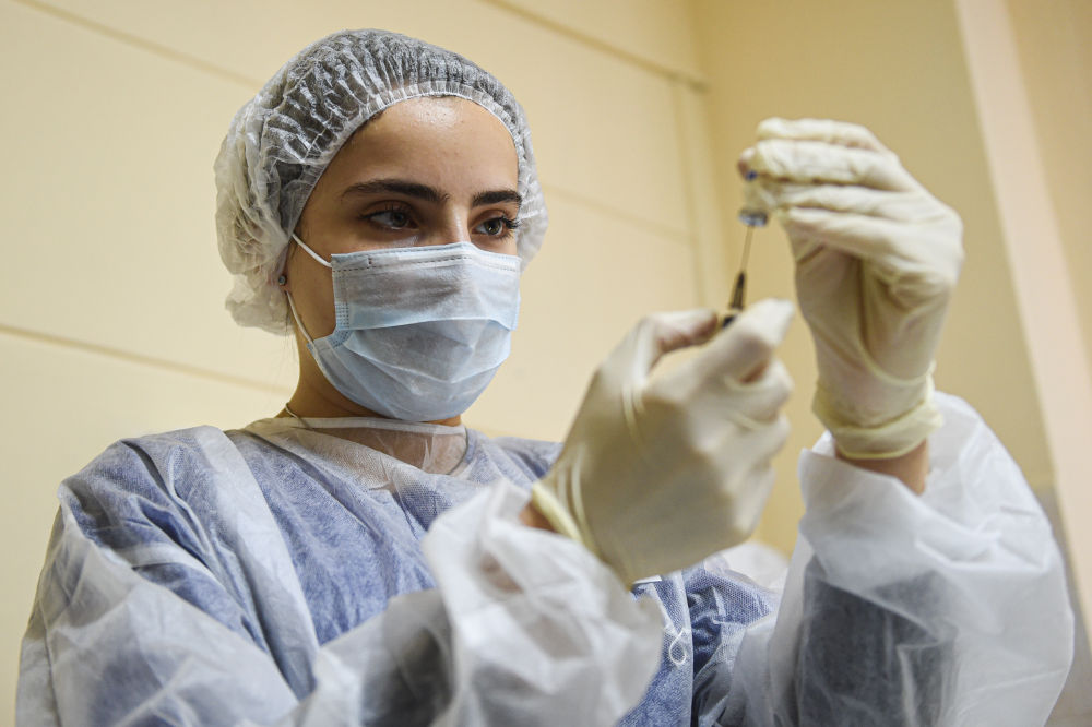 12月8日,在俄罗斯首都莫斯科,医护人员准备进行新冠疫苗接种。位于莫斯科的70多个站点从12月5日起启动新冠疫苗接种工作,自愿申请接种的医护人员、教师等高风险感染人群将优先接种该疫苗。新华社发(叶甫盖尼·西尼岑摄)