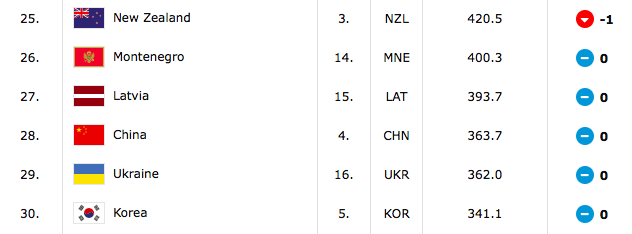 俄罗斯队与捷克队在排名上交换了位置,跻身世界前10。由于在欧锦赛预选赛中输给丹麦和比利时队,捷克队降至第11。