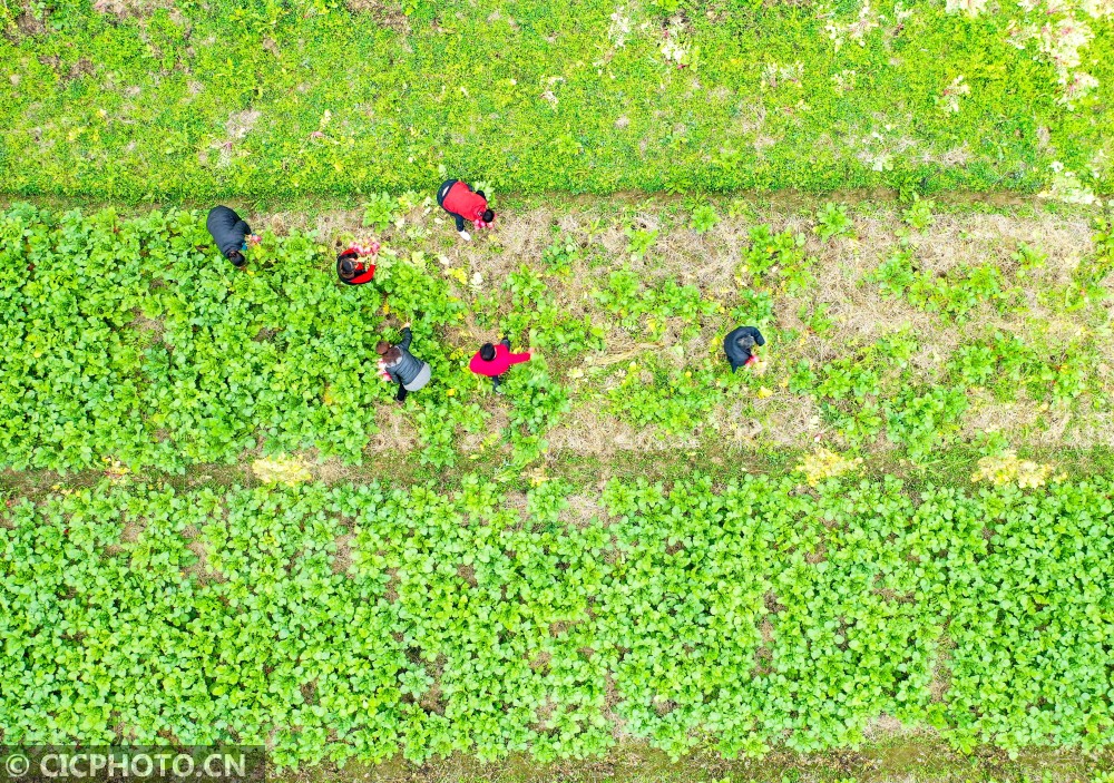 以上图片:湖南省永州市道县柑子园镇善祥村,村民在采收“把截萝卜”。CICPHOTO/蒋克青 摄