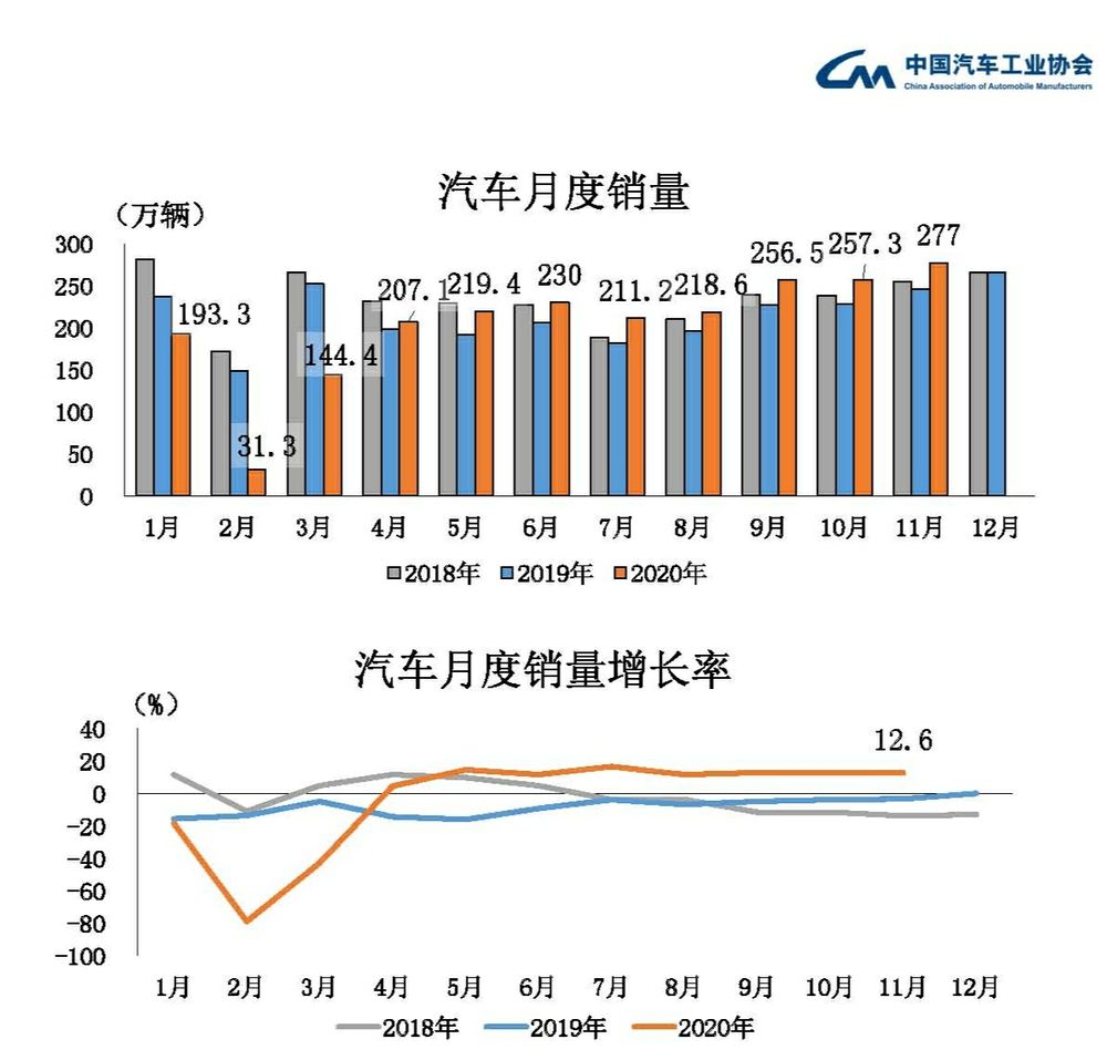新华社北京12月11日电(记者安娜、王文迪)记者11日从中国汽车工业协会获悉,11月汽车产销延续了增长势头,产销量均创年内新高,分别达到284.7万辆和277万辆,环比分别增长11.5%和7.6%,同比分别增长9.6%和12.6%。