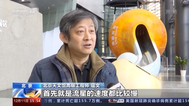 北京天文馆高级工程师 寇文:从天黑以后大概一个多小时,就可以看到这个双子座流星雨了。比较显著的特点,首先就是流星的速度都比较慢,另外它的这个亮流星应该也是比较多的,就是在各种条件都比较理想的情况下,一个小时看到几十颗流星还是很容易的。