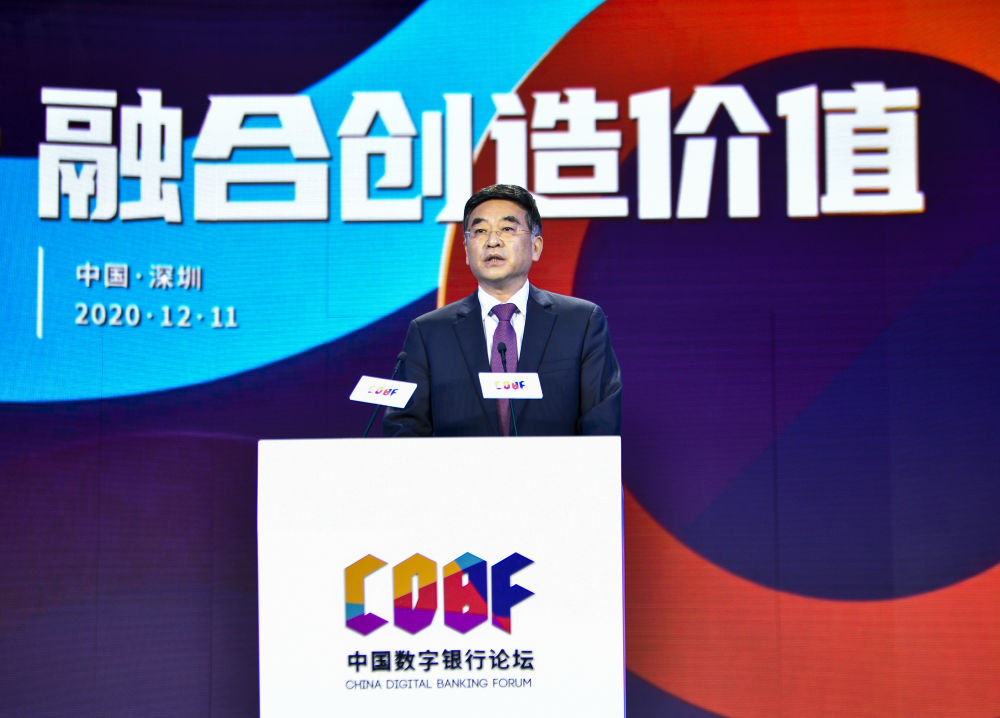 图为中国银行业协会秘书长刘峰在第四届中国数字银行论坛上发言