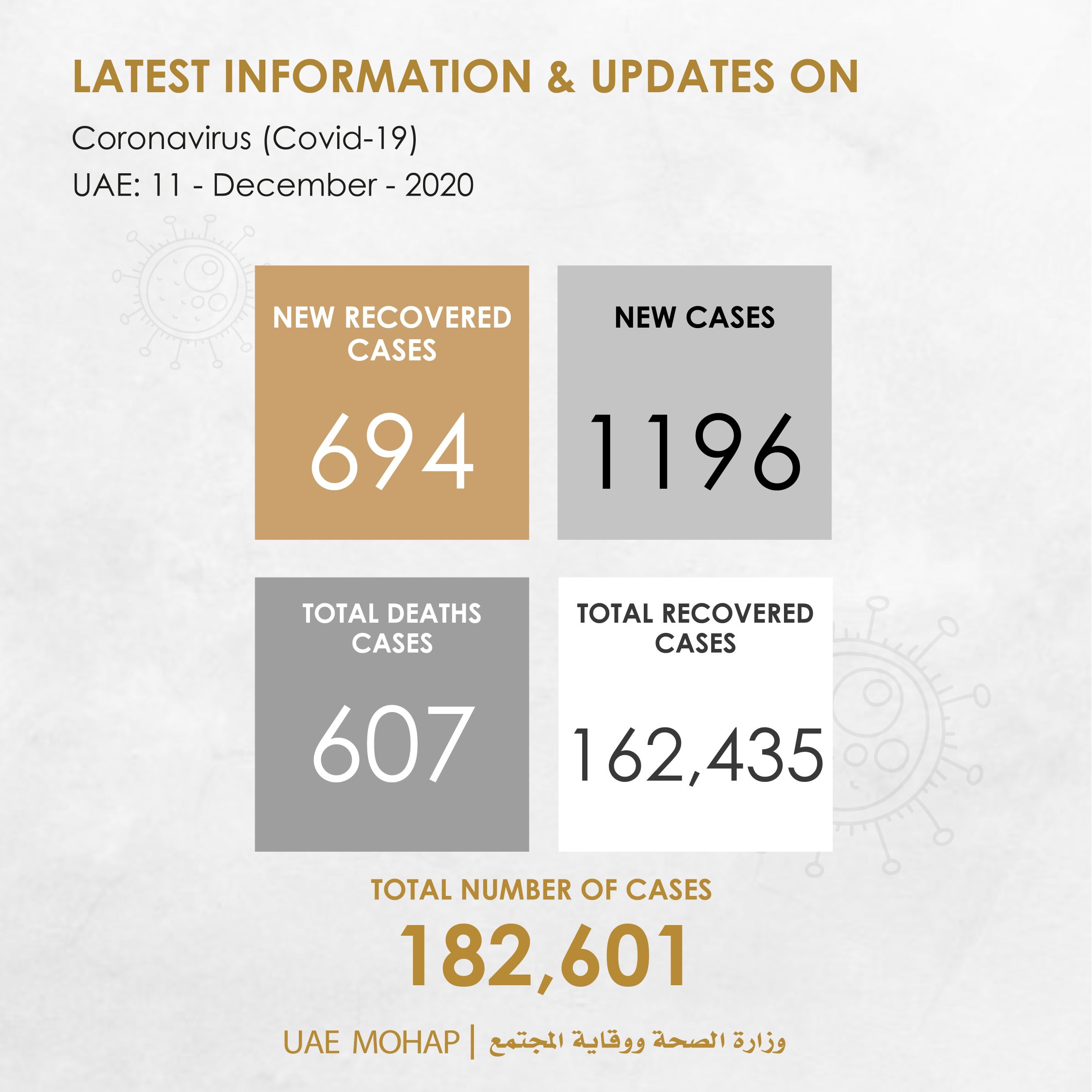 当地时间12月11日,阿联酋卫生和预防部通报该国新增1196例新冠肺炎确诊病例,同时新增694例治愈病例,新增5例死亡病例。至此阿联酋境内新冠肺炎确诊病例累计达182601例,其中治愈病例162435例,死亡病例607例。疫情暴发以来,阿联酋疫情一度好转,8月初每日新增病例降至了200例以下,但从8月中下旬以来该国疫情开始反弹,进入10月后每日新增病例大多在1000例以上,10月22日新增病例1578例,是阿联酋疫情暴发以来最高点。(总台记者 李霜溪)