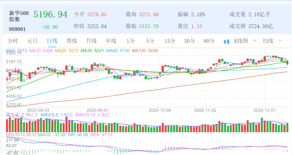 图为新华500指数(989001)日K线图