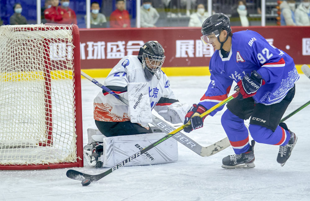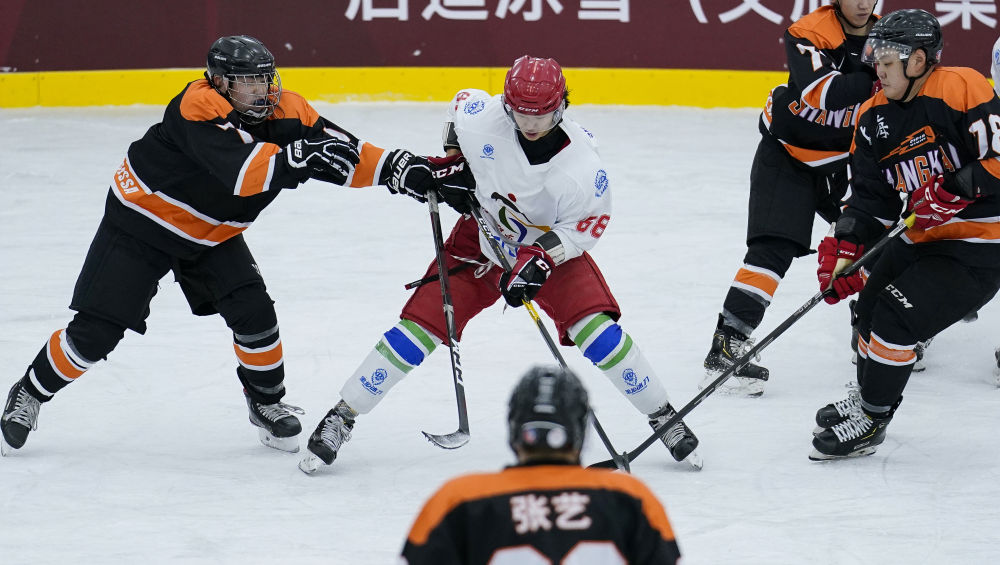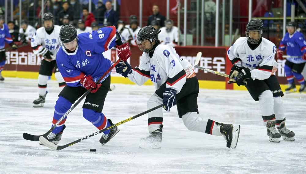 新华社昆明12月11日电(记者丁怡全)2020年全国冰球锦标赛男子组11日进行最后一轮小组赛。本轮焦点战当属“北京德比”,在一场进球大战中,北京体育职业学院队9:5战胜北京队。