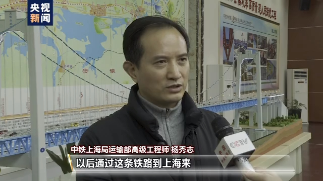 中铁上海局运输部高级工程师 杨秀志:北方地区比如说青岛它以前(到上海)也是要绕行京沪高速铁路,以后通过这条铁路到上海来时间上可以极大缩短,另外距离可以缩短450公里左右。