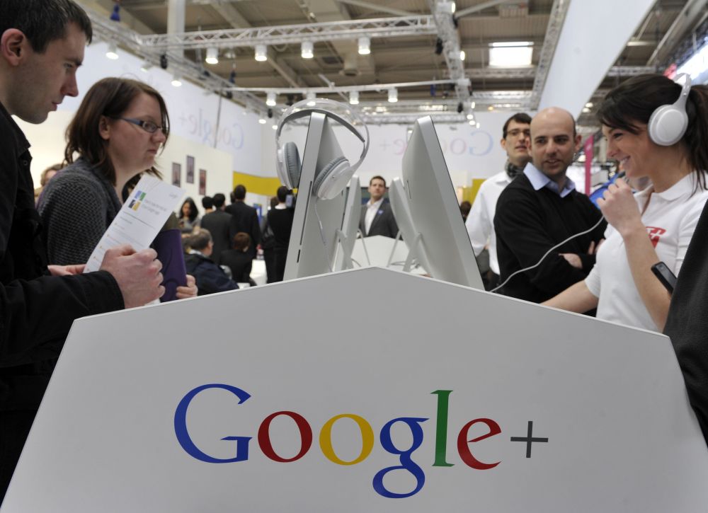 2012年3月6日,在德国汉诺威会展中心举行的汉诺威信息及通信技术博览会上,参观者在谷歌展台参观。(新华社记者马宁摄)