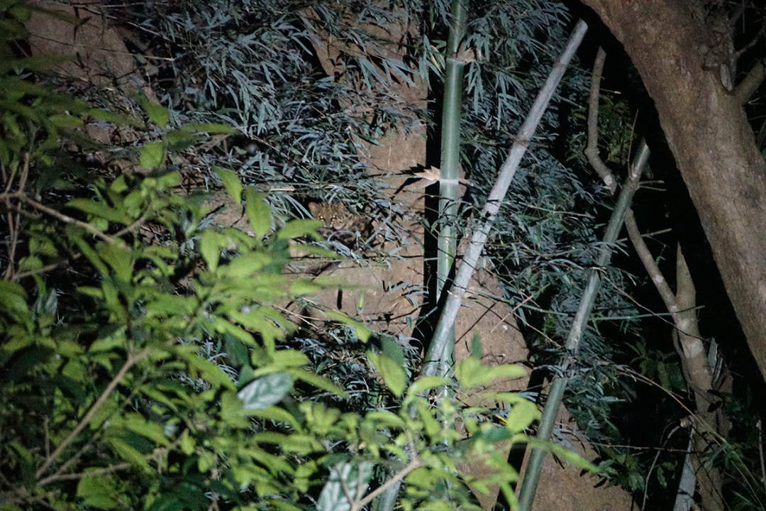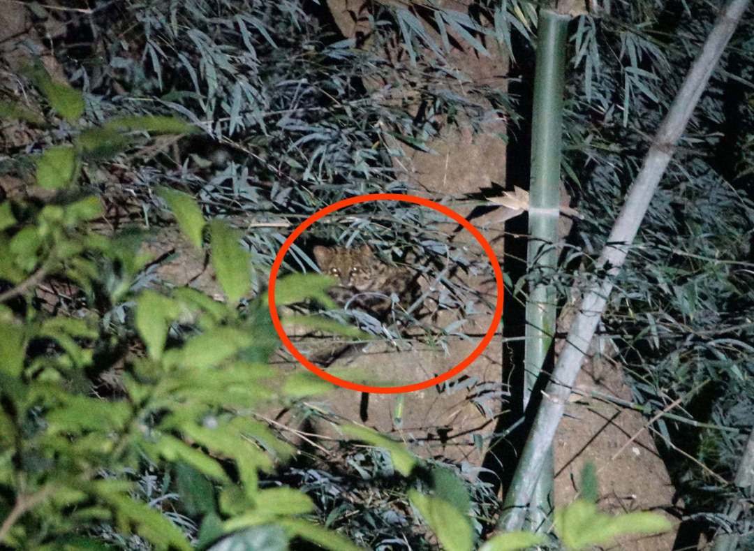 据拍摄者曾祥乐介绍,12月2日晚,他如往常一样带着来盈江县进行自然观察的爱好者准备出门夜观。他将手电筒伸出车窗“扫射”寻找夜间出现的动物时,以为也只会和往常一样看到云南大鼯鼠、蜂猴、椰子狸、黑白飞鼠等见过多次的物种。突然,他看到一棵大树分支树干上蹲着一只猫科动物,急忙举起望远镜进行观察,“第一眼确定是猫科动物,在德宏野外最大概率看到的猫科动物是豹猫,但我感觉这只猫和以前看到过的豹猫又不一样,拿起相机按了一张照片用于确认,超出我的预料,这只猫竟然乖乖地在那里蹲了好几分钟,给足了我们观察的时间。虽然距离和光线不够理想,不能很好地欣赏它美丽的花纹,但是它总体的样子包括下树的动态瞬间都被很好地观察、拍摄下来。”