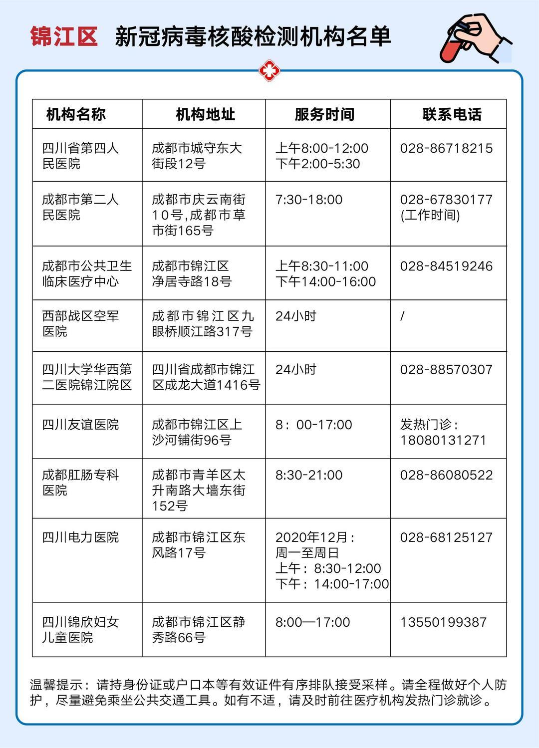 收藏!锦江区核酸检测机构名单公布