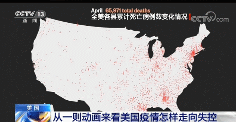 对此,美国全国广播公司制作了反映自今年2月以来美国累积新冠肺炎死亡人数变化的动画短片,直观来呈现美国疫情的失控状态。