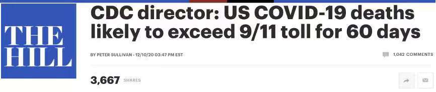 而特朗普视为“救星”的新冠疫苗却得到美国疾控中心的悲观看待,认为疫苗的分发和接种工作仍存很大的不确定性。根据国会山报12月10日的报道,美国疾控中心(CDC)主任罗伯特.雷德菲尔德认为,本周批准的疫苗不会对美国未来60天的疫情走向产生任何影响。