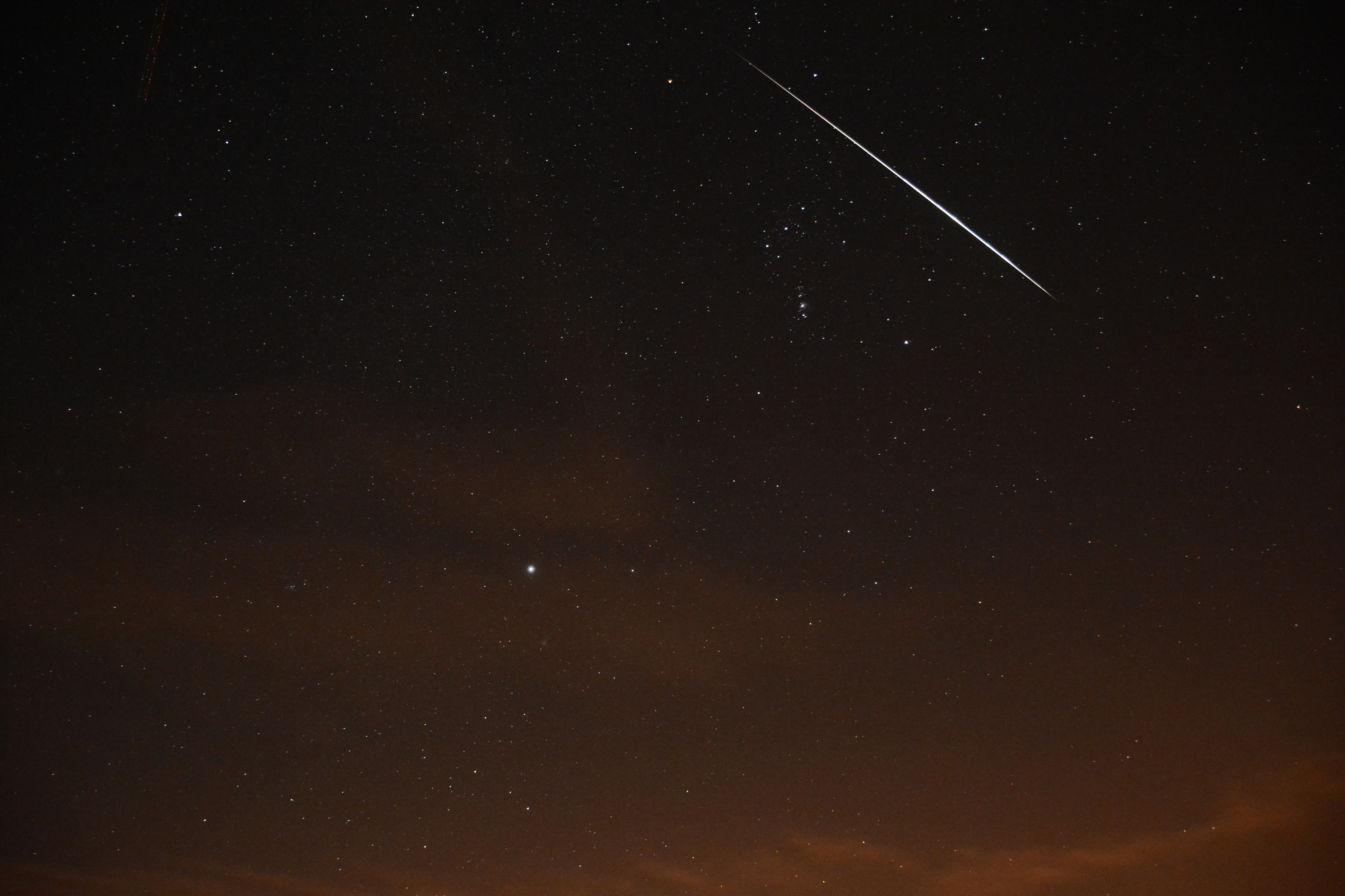 天津市天文爱好者陈若瑜2018年12月15日在天津市宝坻区拍摄的双子座流星雨照片。