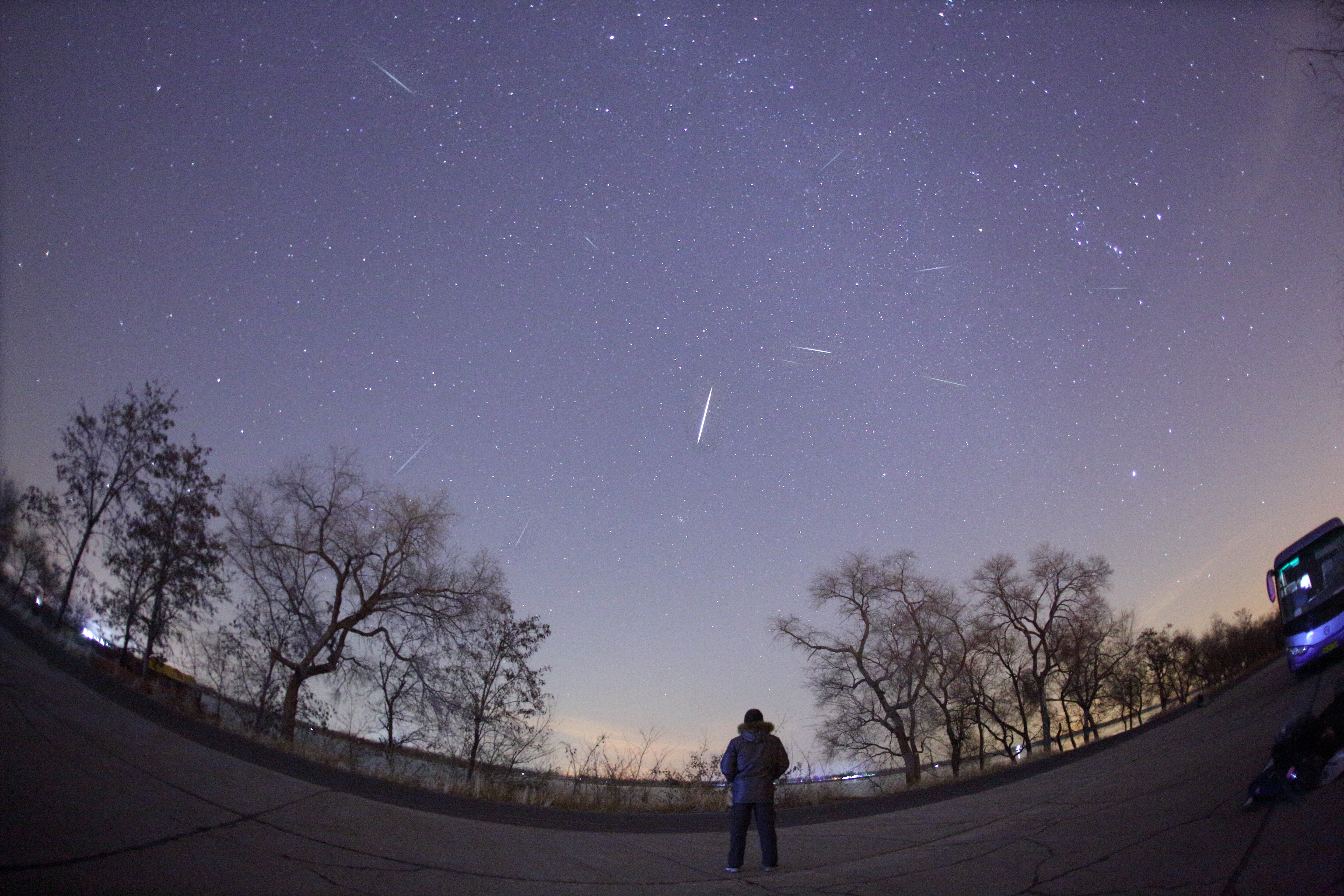 双子座流星雨的活跃期在每年的12月4日至17日,今年极大发生在北京时间14日8时50分,预测峰值每小时天顶流量为150颗左右。