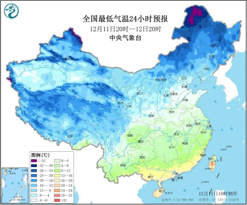这波寒潮将使得全国17个省会级城市