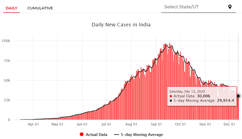 据印度卫生部当地时间12月12日早8时(北京时间10时30分)发布的消息,印度新冠肺炎确诊病例累计达到9826775例,其中死亡病例142628例,治愈出院病例9324328例,活跃病例359819例;24小时之内确诊病例增加了30006例,死亡病例增加了442例,活跃病例减少了3930例。(总台记者 王建兵)