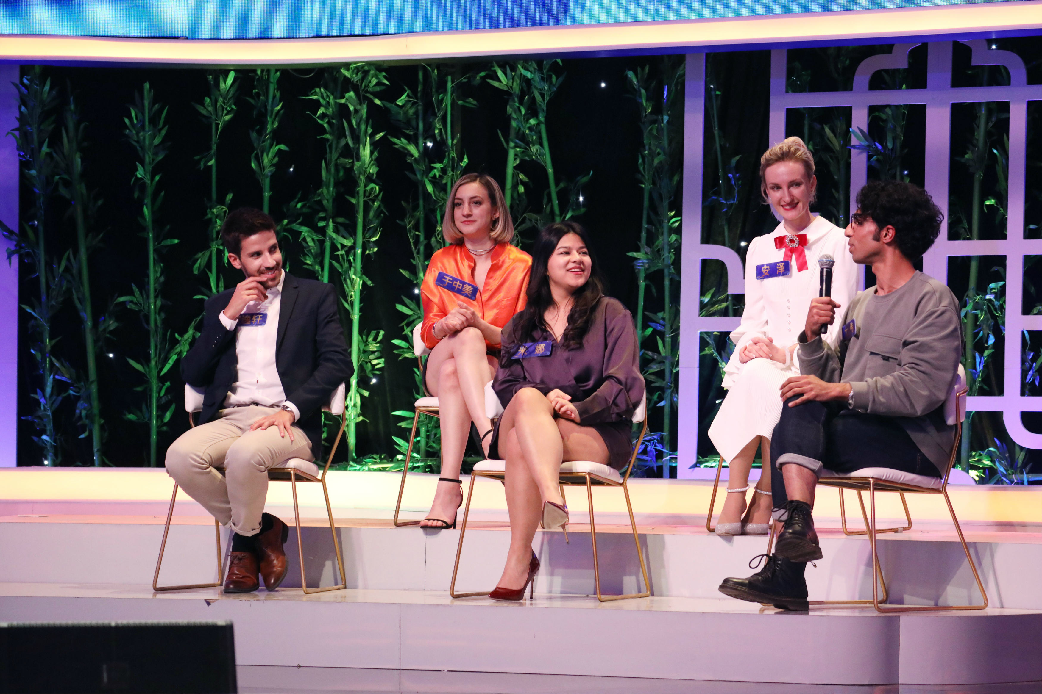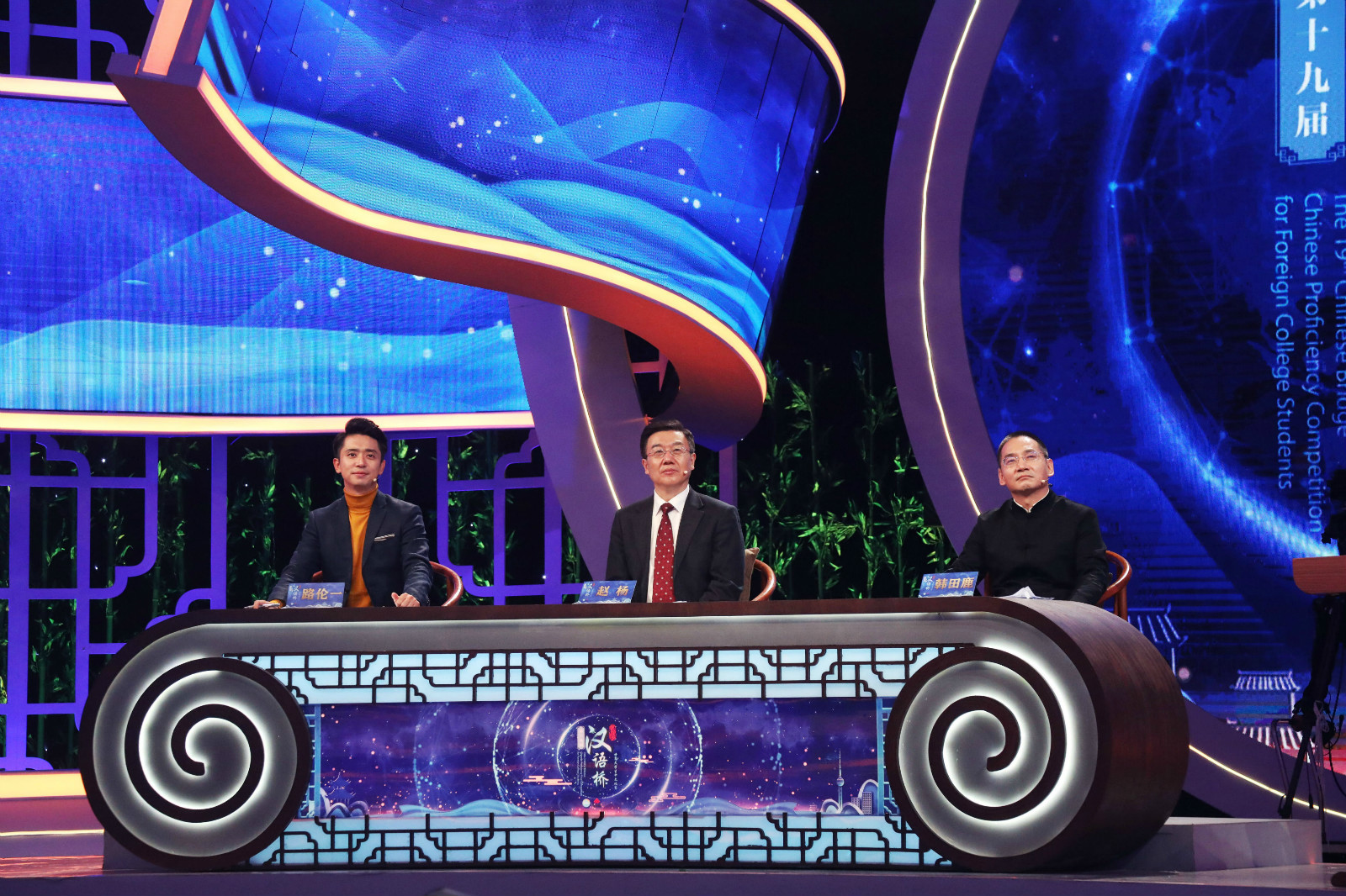 △“汉语桥”评委(从左往右依次:路伦一、赵杨、韩田鹿)
