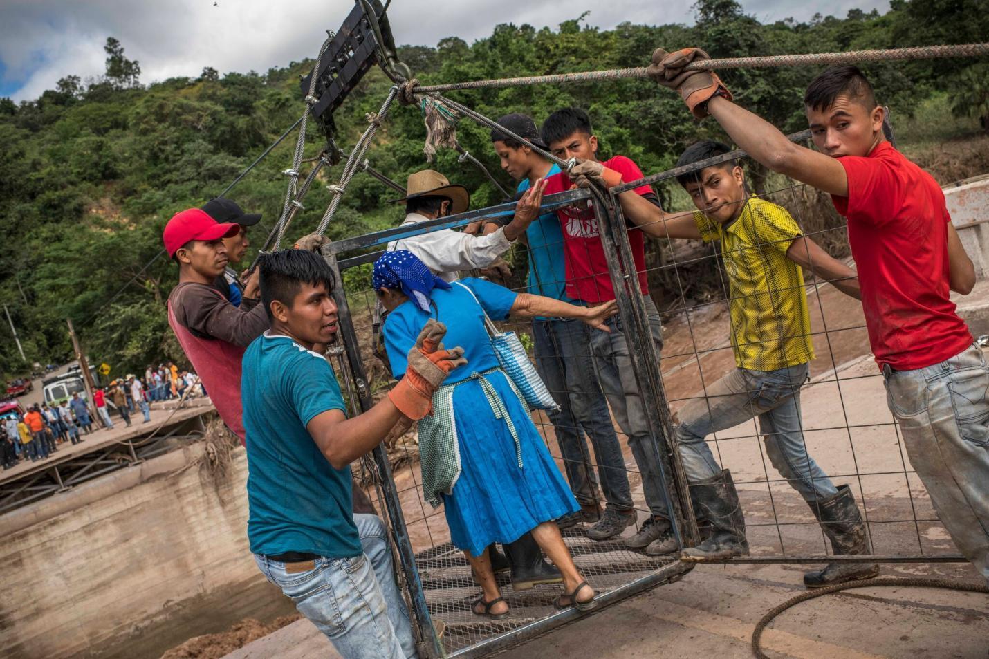 为了寻求新的生路,大量难民开始往北逃亡,他们希望能穿越墨西哥,到达美国境内。难民们挤入手工制作的木筏,穿越暴风雨造成的庞大湖泊。为了通过一条宽阔的河流,他们跳进连接着高空滑索的铁丝网篮,飓风袭击前那里曾是危地马拉的一座桥。