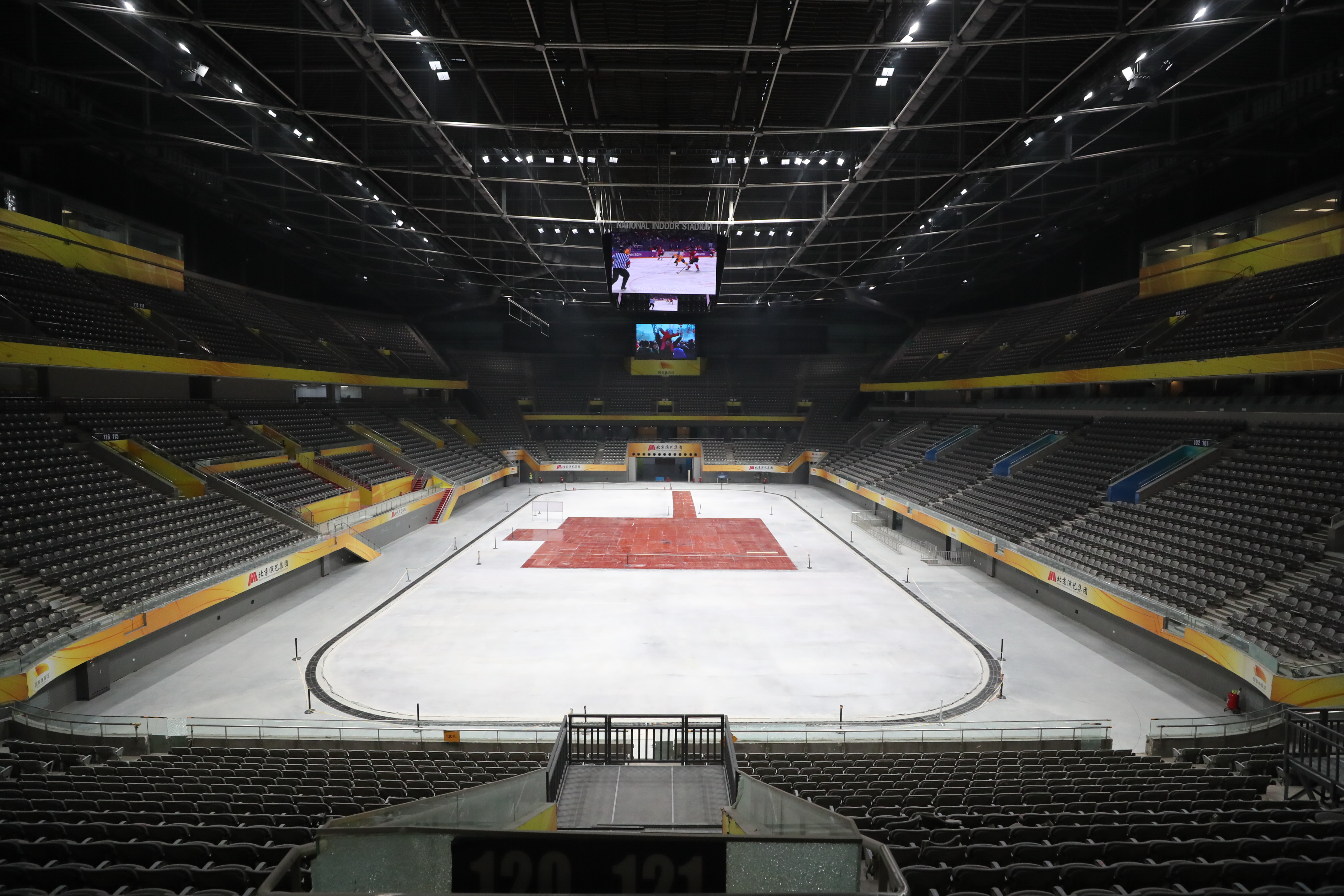 ↑这是12月12日拍摄的国家体育馆冰球比赛场地。