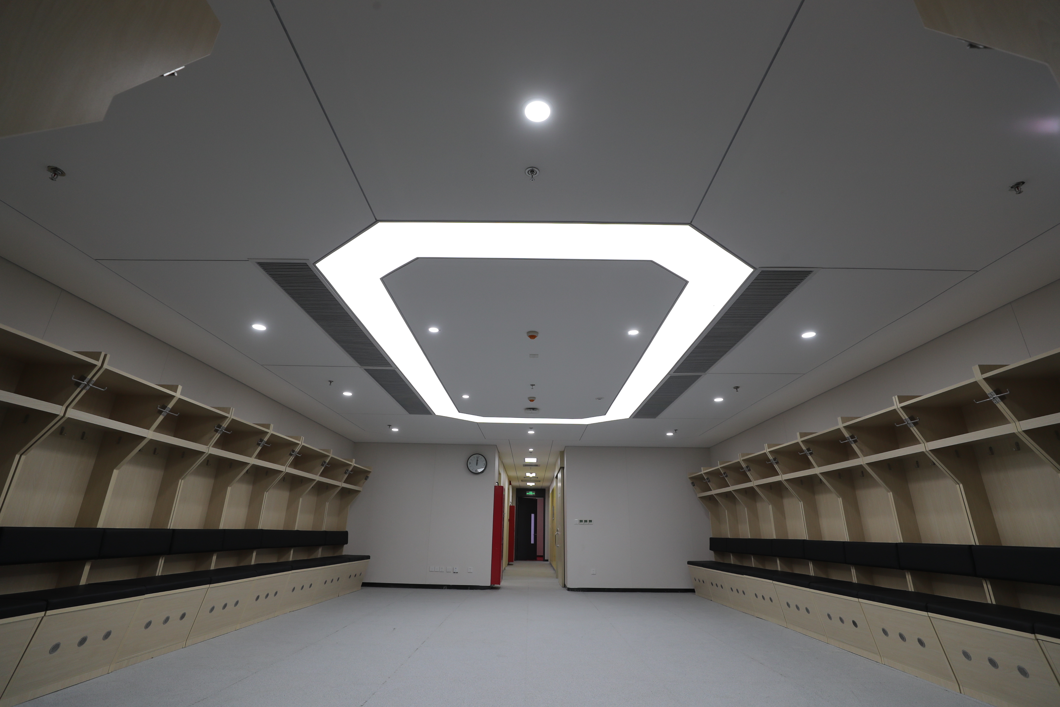 ↑这是12月12日拍摄的国家体育馆装配式更衣间内景。