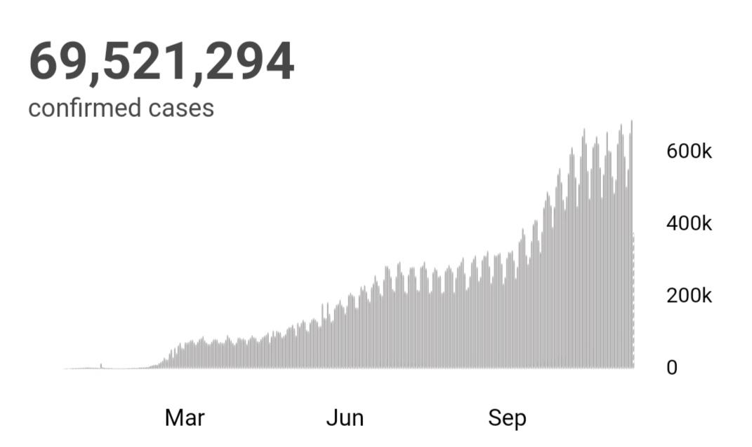 世卫组织:全球新冠肺炎确诊病例超过6952万例