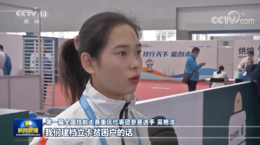 第一届全国技能大赛重庆代表团参赛选手 吴艳洁:在学校里面的话,我们建档立卡贫困户的话,每年都有国家的资助,我希望我未来能够做一名老师,能带动更多的,像我一样的学生走上技能的这一条路。