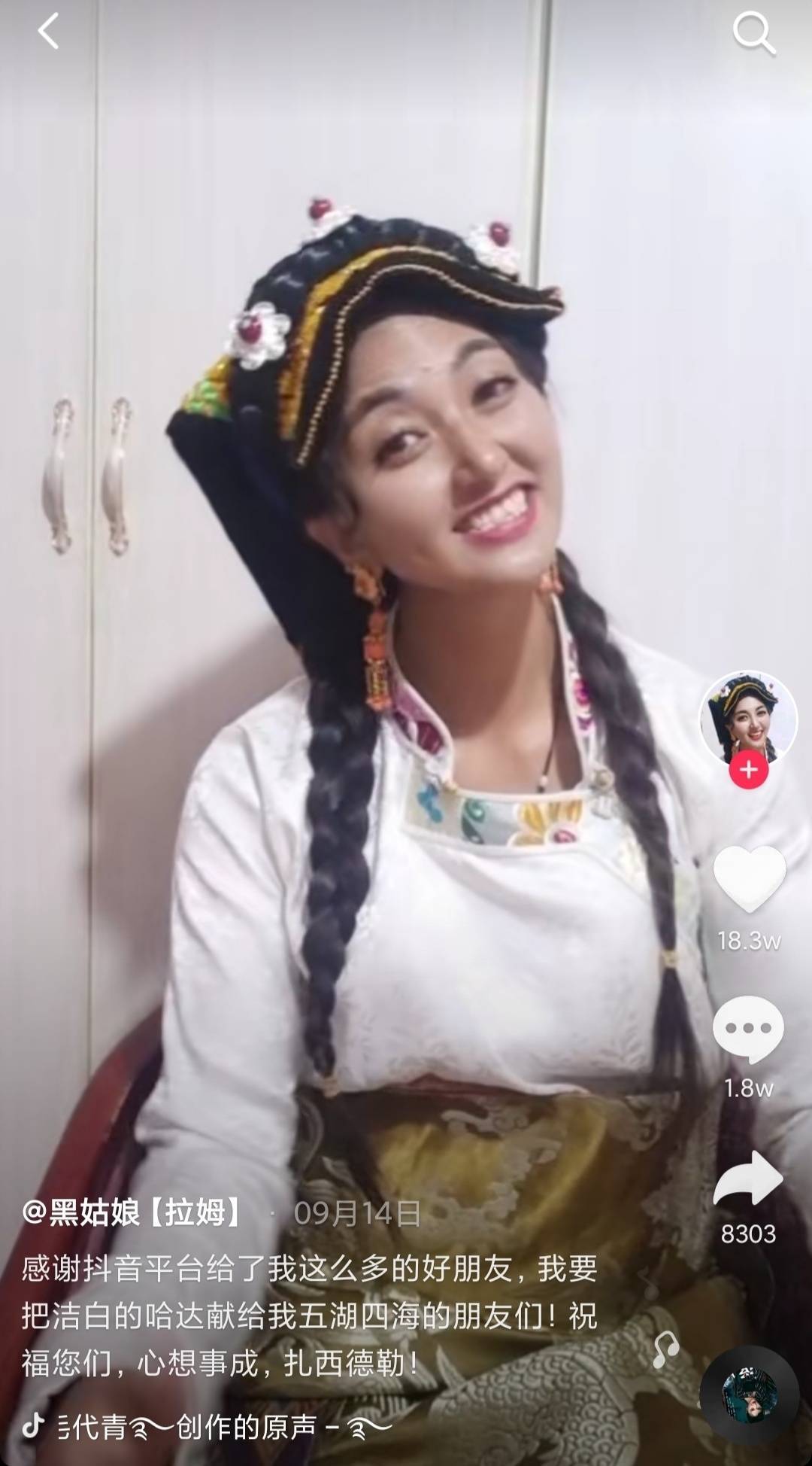 四川省阿坝州金川县观音桥镇麦斯卡村的网红“黑姑娘拉姆”(真名阿某某),常常将蓝天、白云、雪山、草地、牦牛等家乡美景,通过直播展现给广大网友。常常素颜出镜的她,被网友称作“最朴实自然的一个”。